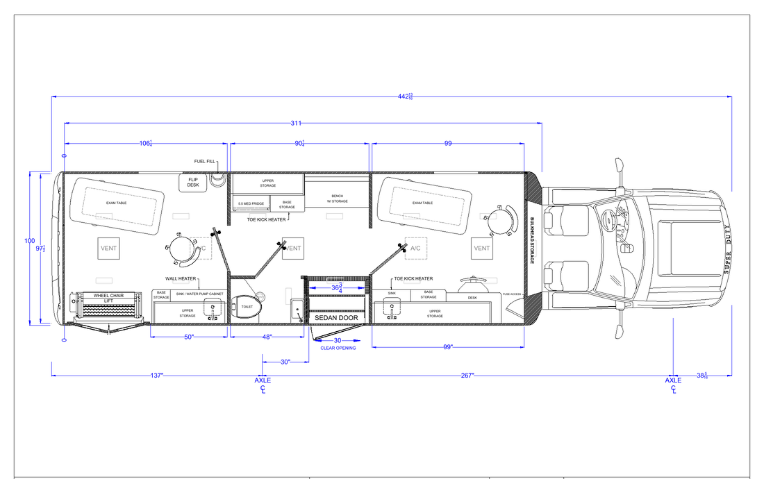 Our vehicles are NEVER built from retrofitted RV’s which are not designed to hold up to the operational use of medical clinics. Each TESCO Specialty Vehicles is custom built for its commercial application, with steel body construction directly to the chassis. We welcome the opportunity to show you the difference and review with you our manufacturing process.