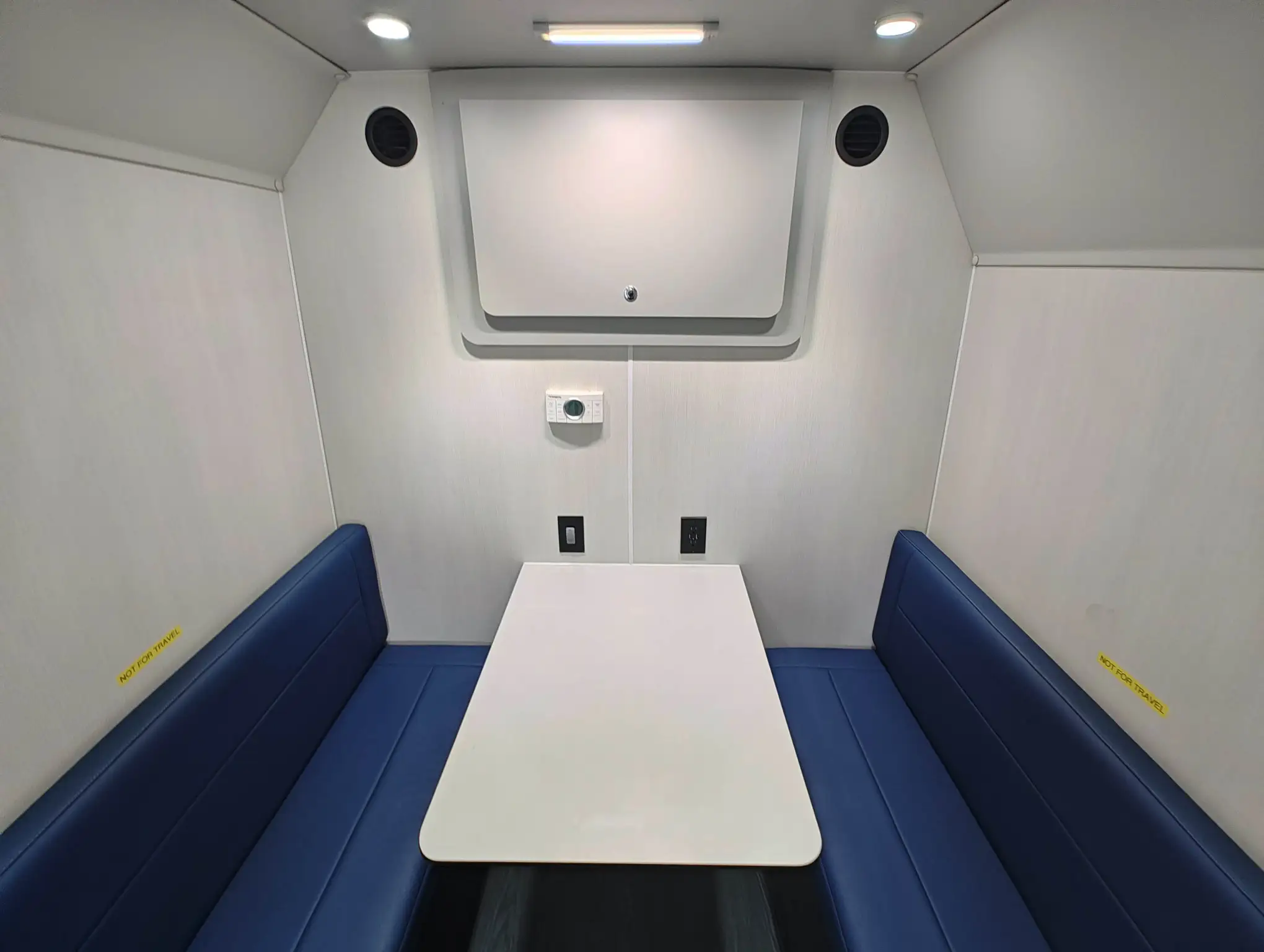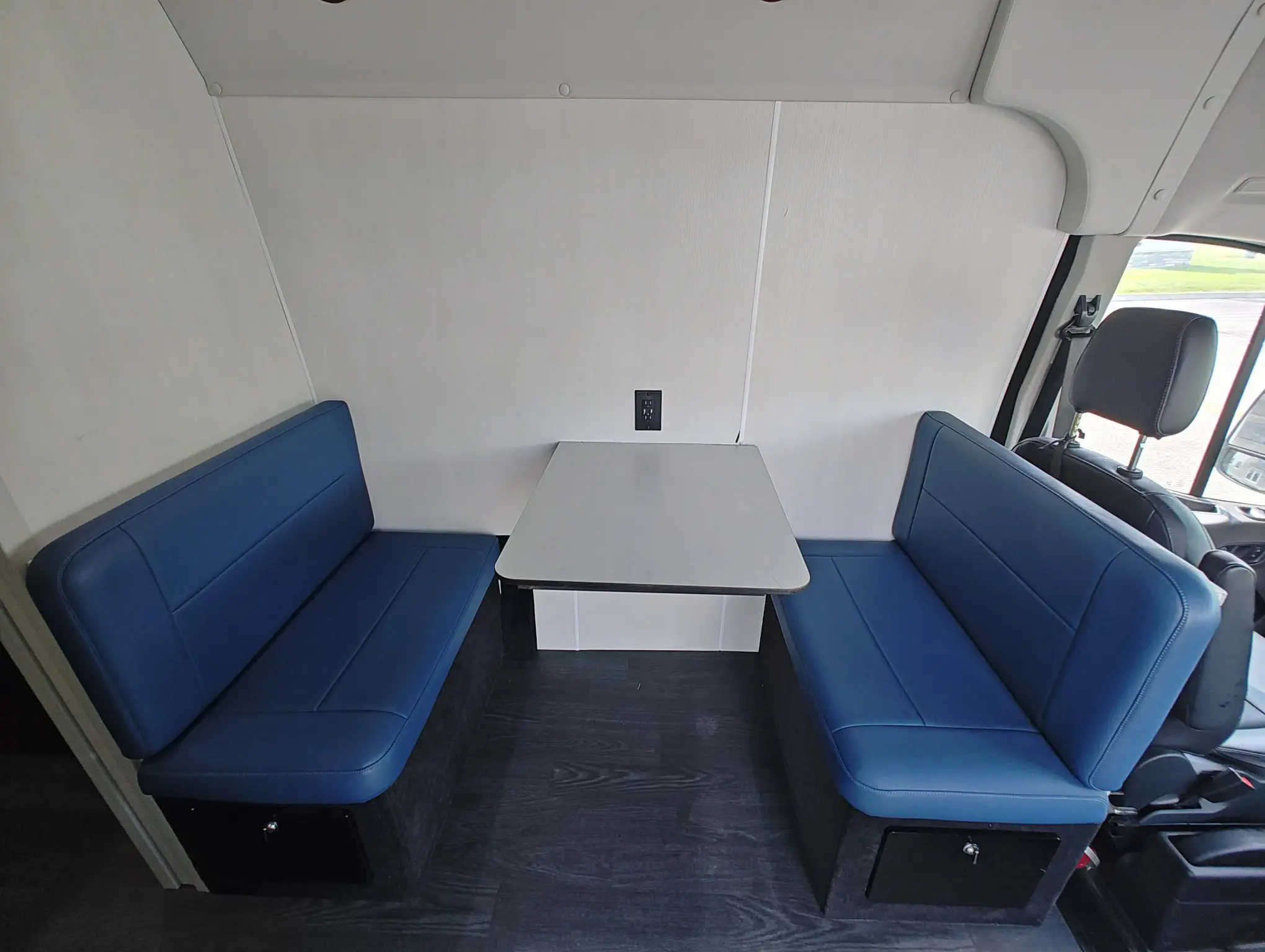 For sale is a 2022 Ford Transit Mobile Office/ Consultation Clinic with only 5,110 miles. This clinic is in pristine shape and is ready for action immediately! The unit would be perfect for a mobile office or a behavioral health clinic! This clinic comes equipped with a 4 Kw Cummins Onan generator, Fiamma F65 eagle power awning, dual exterior GFCI outlet, Dometic rooftop AC, and backup camera system. The interior of the unit includes (2) meeting table with bench seating, a sliding privacy door to separate the meeting rooms, rear upper storage compartment, Defender carbon monoxide alarm, and storage beneath the front benches.