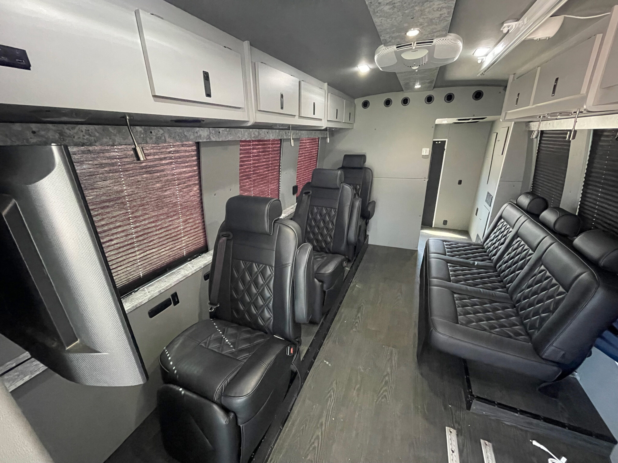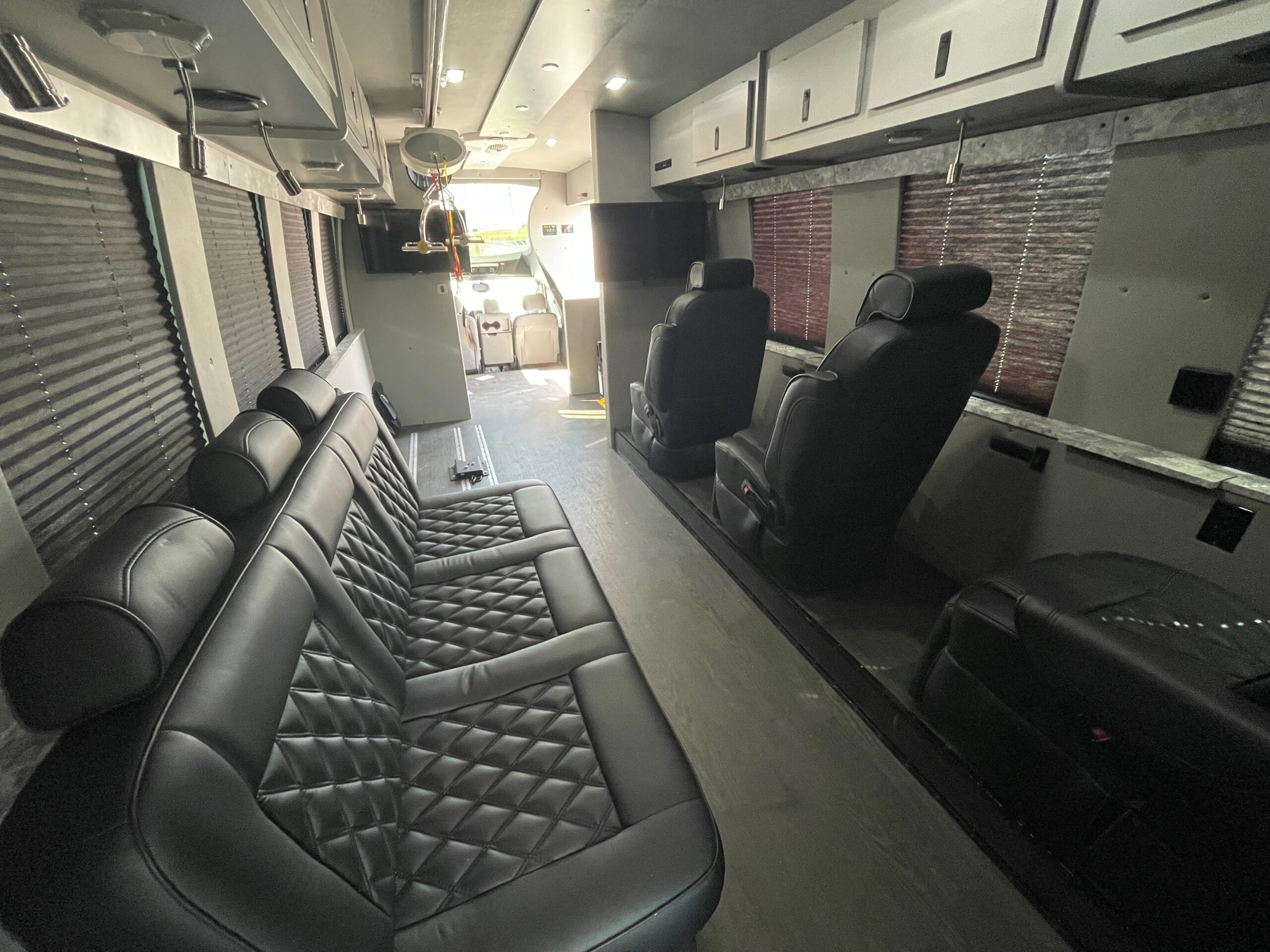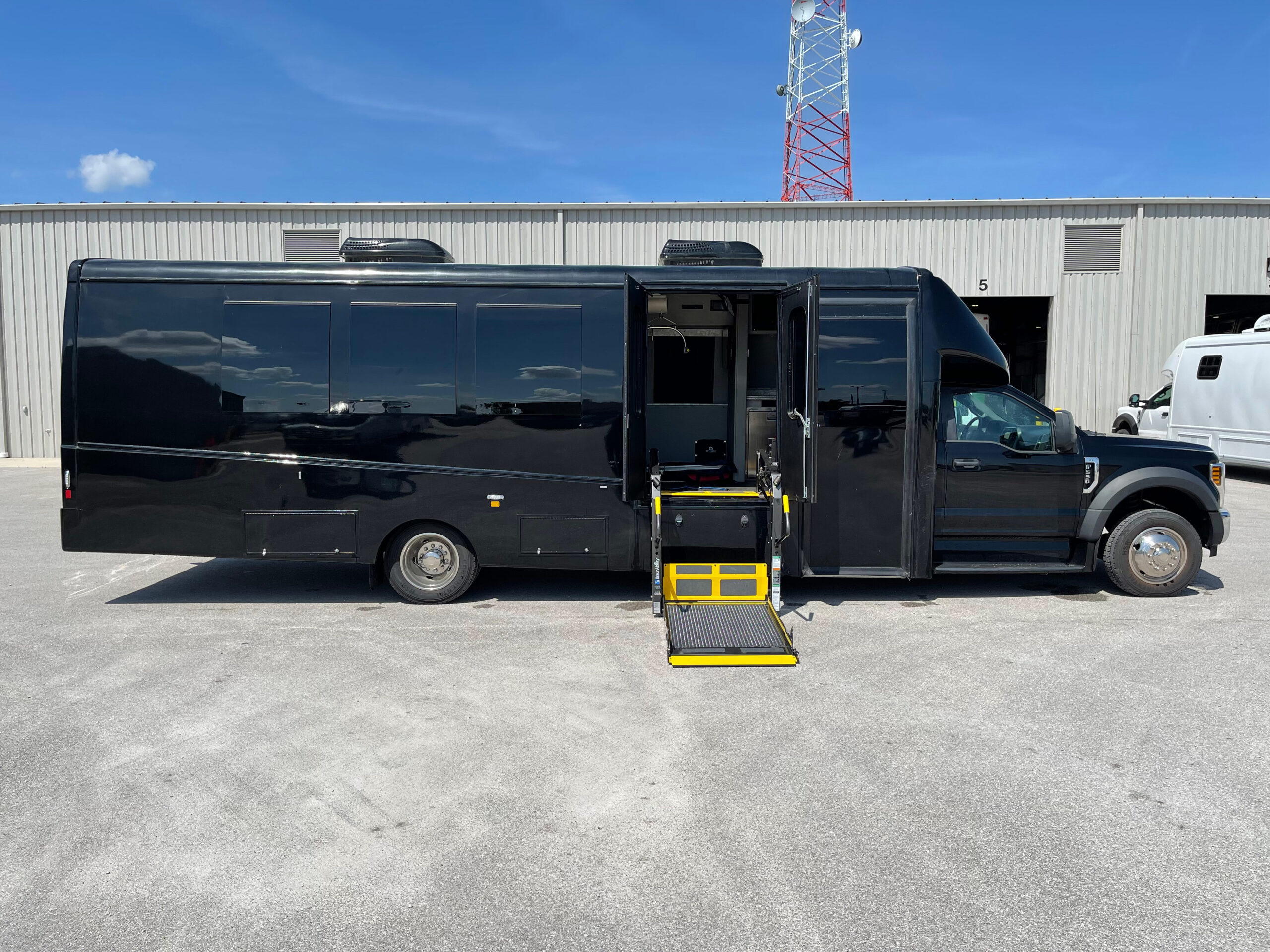For sale is a 2019 Berkshire Coach Specialty Vehicle with only 5,640 miles. This unit is equipped with a 8 Kw Cummins Onan Quiet Diesel Generator, ADA certified Braun Century lift, “Handi Move” hoist system for immobile passengers to be transferred, floor tracking for Wheelchair Occupancy/Tie-Downs, IC Series inverter display w/ remote control, Dometic Rooftop A/C units (2), Dometic Thermostat controls in the rear (2), Dometic Fridge w/ Freezer, microwave, flat Screen TV’s in the rear each with their own DVD player (2), electric Window Shades, TreadLite rear electric step, 125/250V shore power outlet, backup camera system, premium leather seats w/ controls (3), premium leather fixed bench, upper locking cabinets (11), rear storage area, rear speakers, rear dome lighting, AM/FM/Bluetooth access, power windows and locks, power and heated mirrors, tilt steering, cruise control, tow option, electric entry door, underneath storage compartments, emergency equipment and much more.