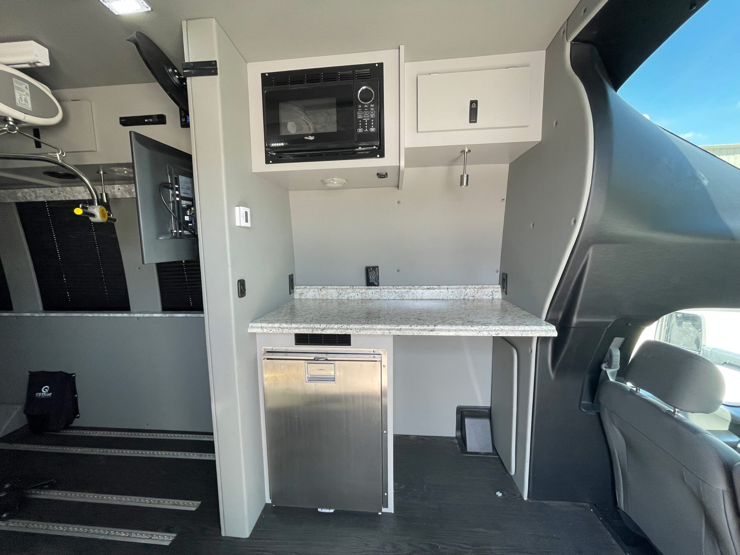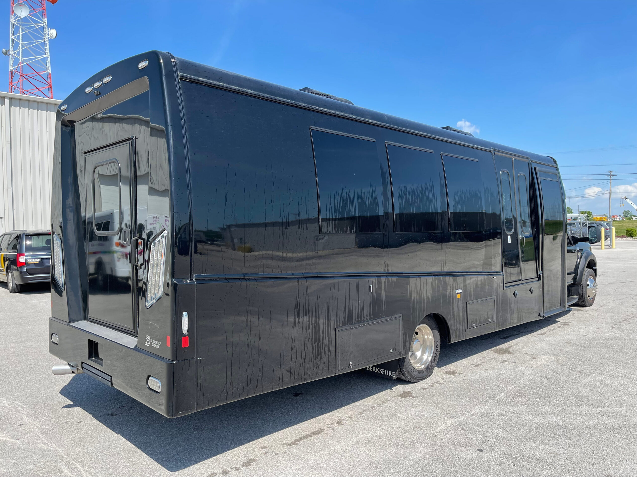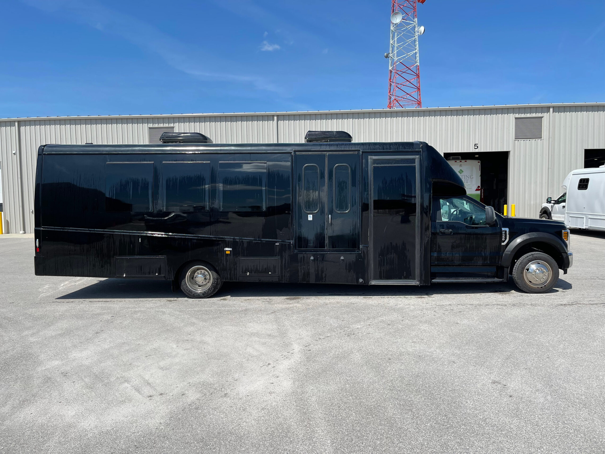 For sale is a 2019 Berkshire Coach Specialty Vehicle with only 5,640 miles. This unit is equipped with a 8 Kw Cummins Onan Quiet Diesel Generator, ADA certified Braun Century lift, “Handi Move” hoist system for immobile passengers to be transferred, floor tracking for Wheelchair Occupancy/Tie-Downs, IC Series inverter display w/ remote control, Dometic Rooftop A/C units (2), Dometic Thermostat controls in the rear (2), Dometic Fridge w/ Freezer, microwave, flat Screen TV’s in the rear each with their own DVD player (2), electric Window Shades, TreadLite rear electric step, 125/250V shore power outlet, backup camera system, premium leather seats w/ controls (3), premium leather fixed bench, upper locking cabinets (11), rear storage area, rear speakers, rear dome lighting, AM/FM/Bluetooth access, power windows and locks, power and heated mirrors, tilt steering, cruise control, tow option, electric entry door, underneath storage compartments, emergency equipment and much more.