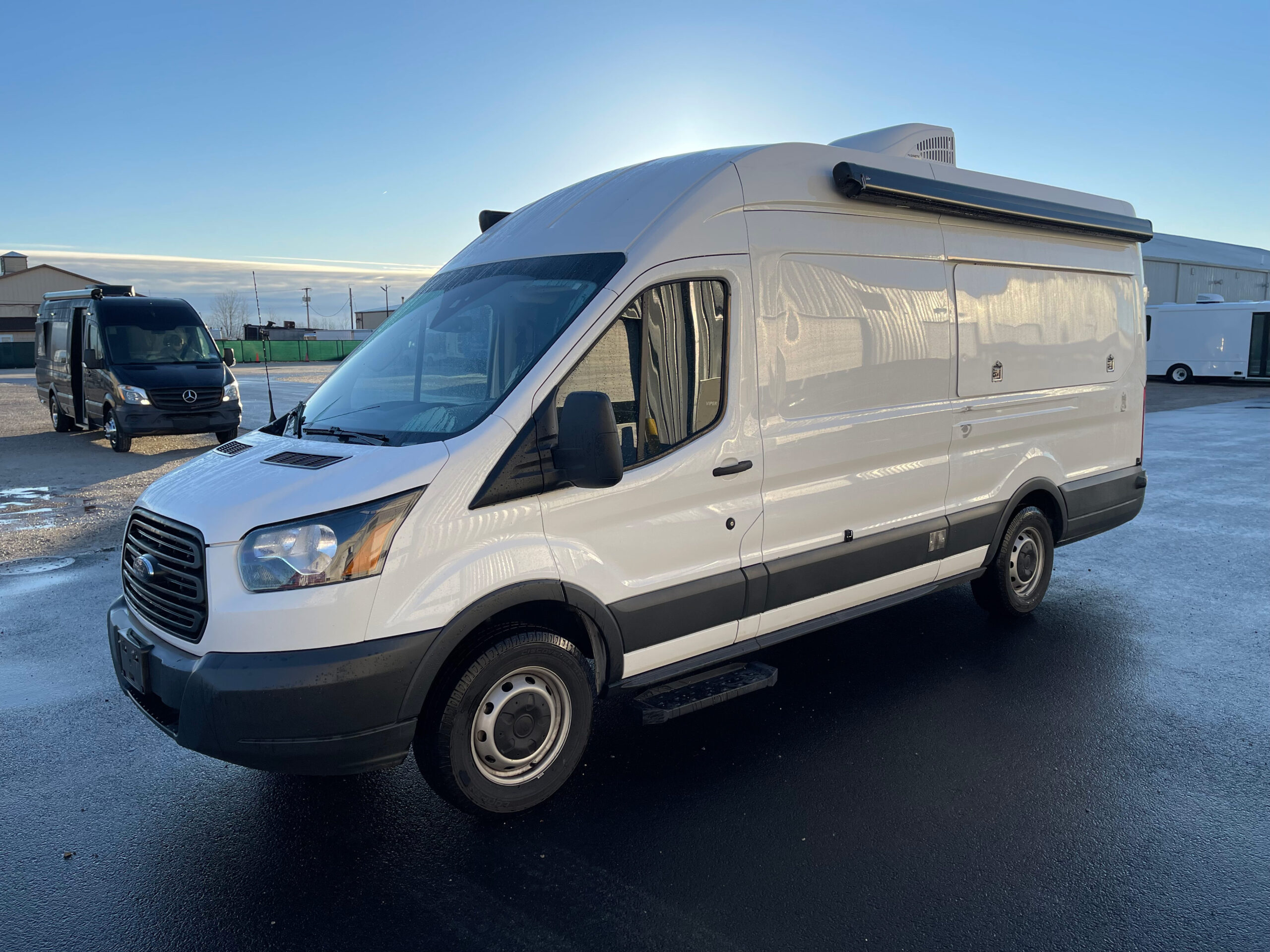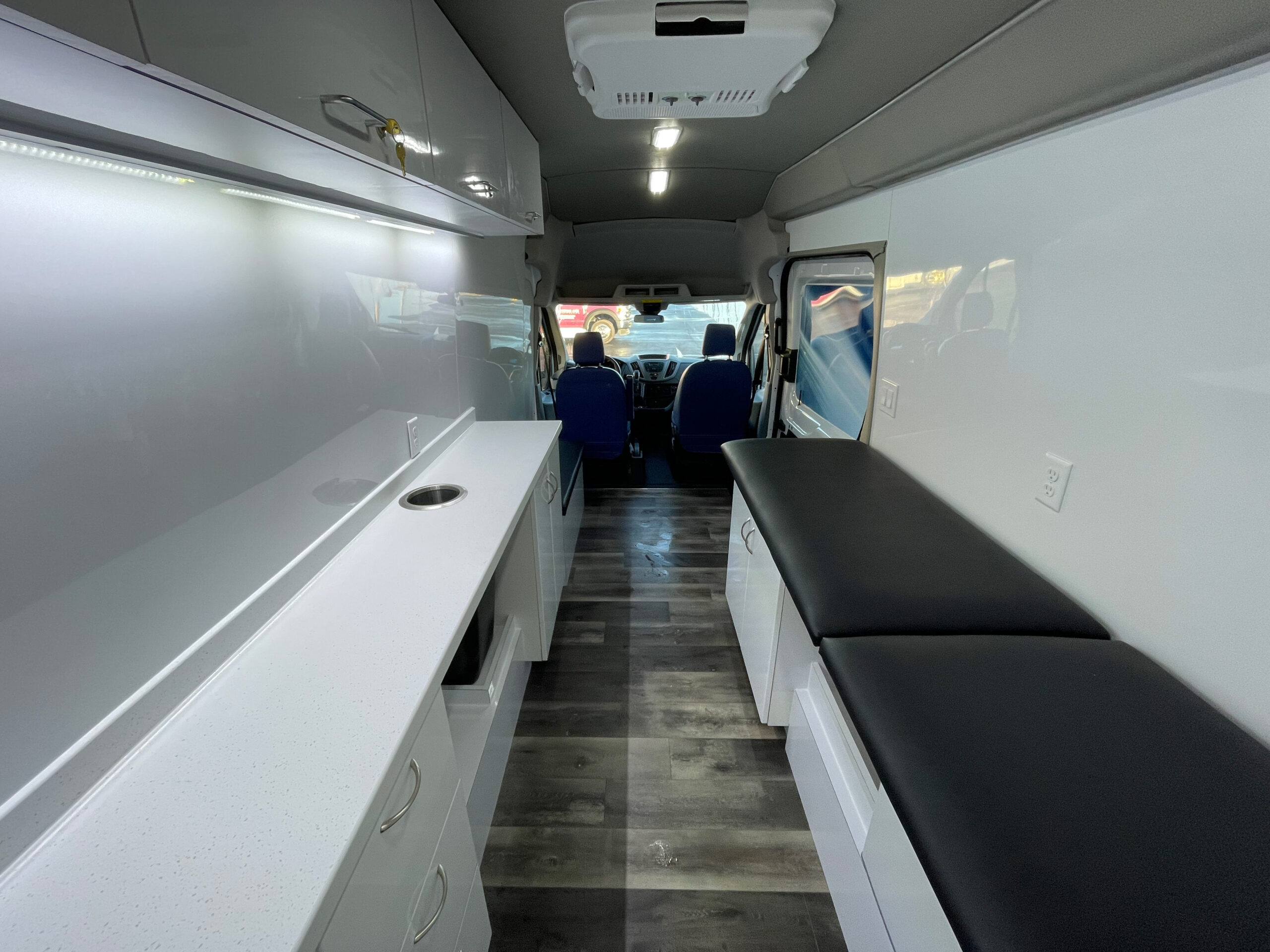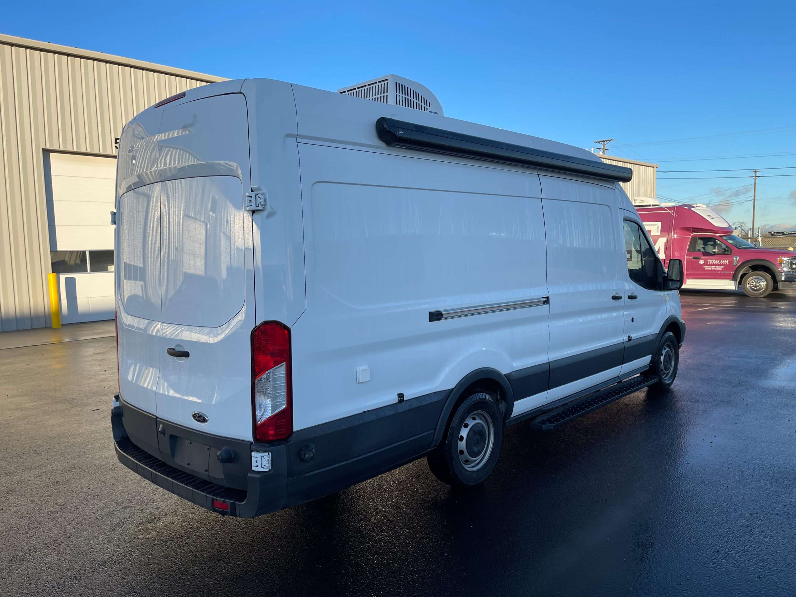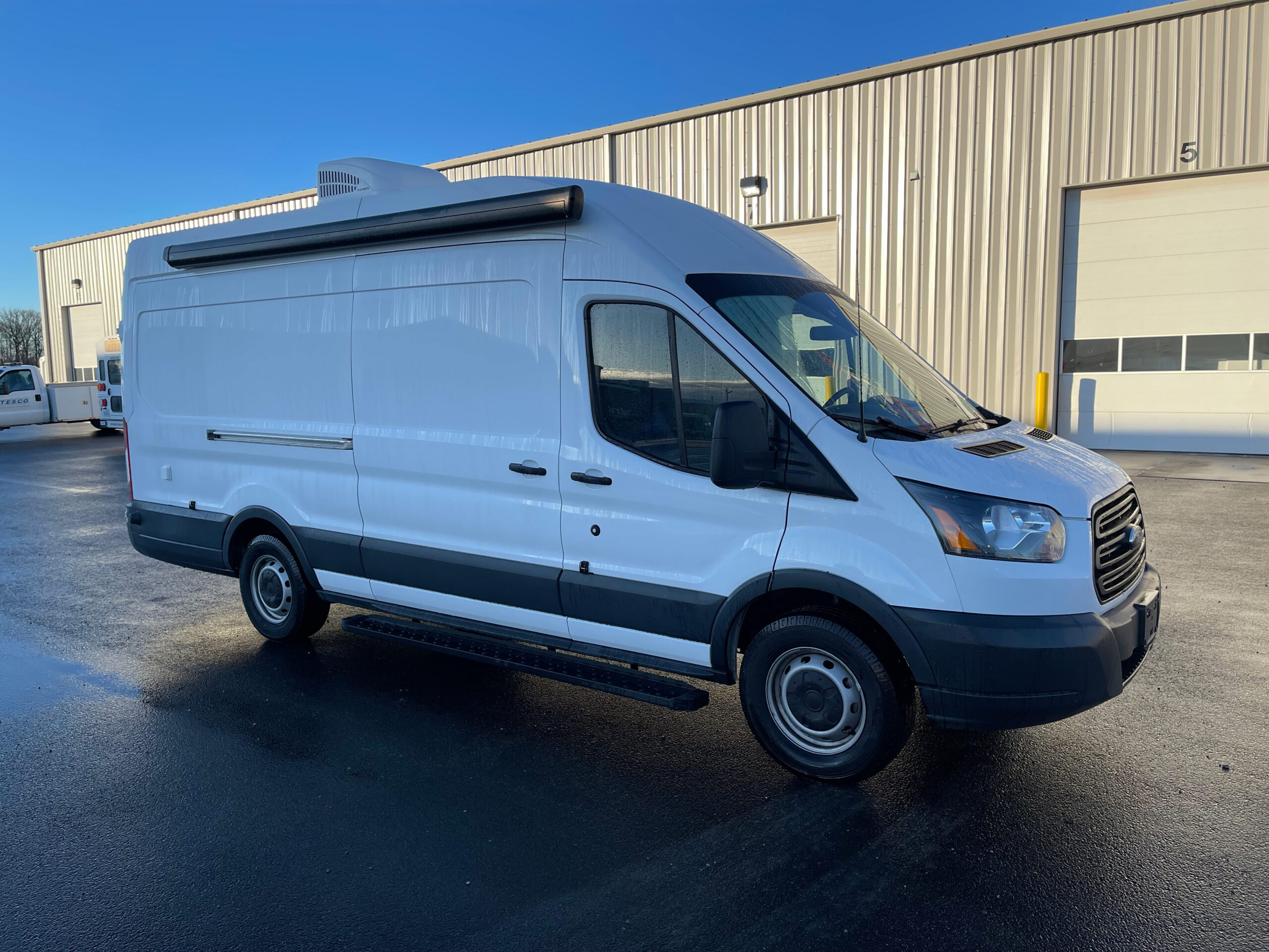 For sale is a 2017 Ford Transit Specialty unit with 70,726 miles. This unit has ideal floor space for 1 exam area, with the exam bed built into the wall for stability and the back incline adjustable for comfort, still allowing for great work flow. It comes equipped with passenger and driver side awning systems, newer flooring that’s in excellent shape, Black and Decker Fridge, power windows and locks, power steering, tilt steering, AM/FM/MP3 Stereo, manual entry door, entry grab handle, dash heat/AC, rear dome lights, vinyl seating, rear storage, exterior storage compartment on driver side, medical equipment, and much more.