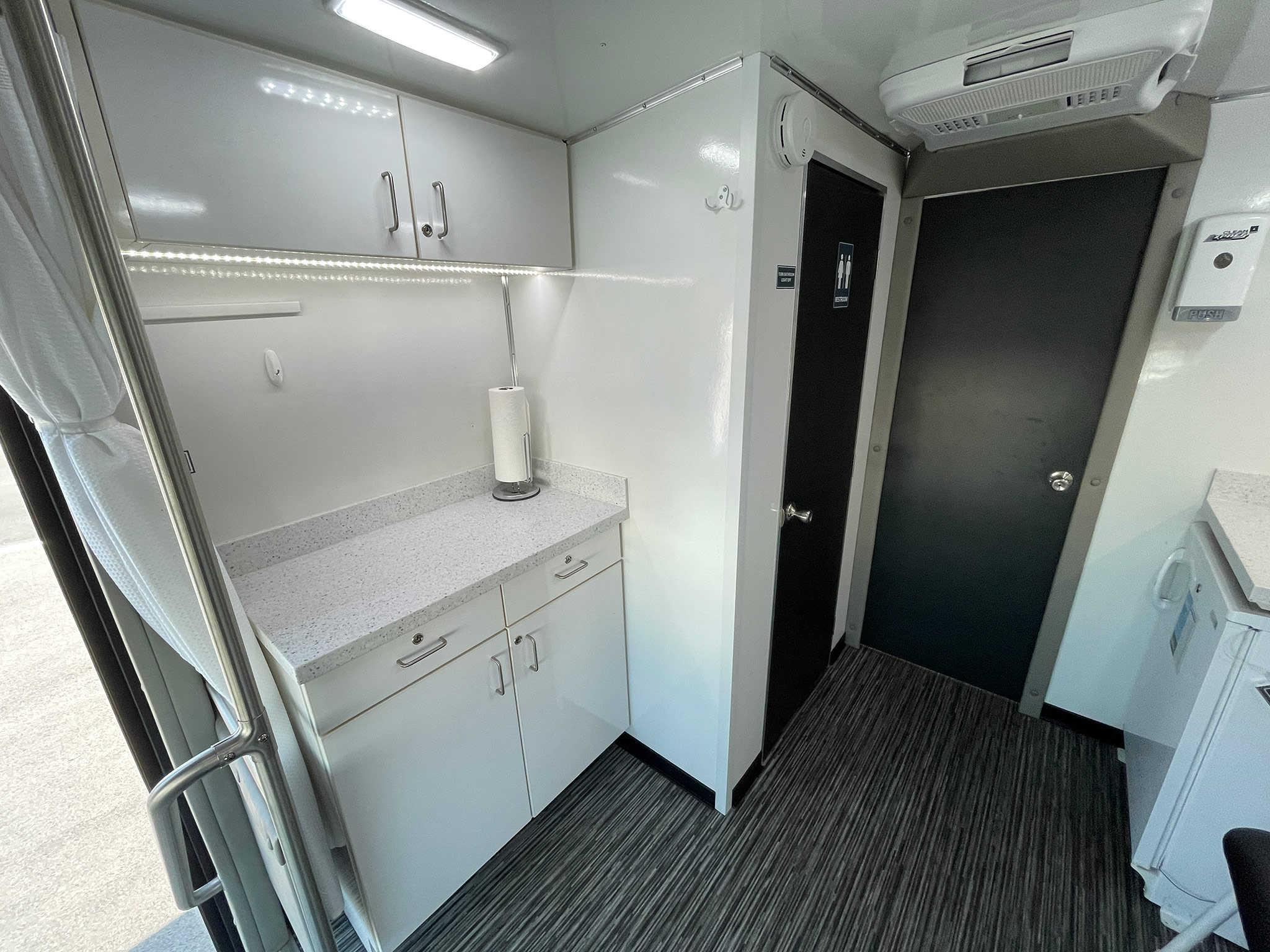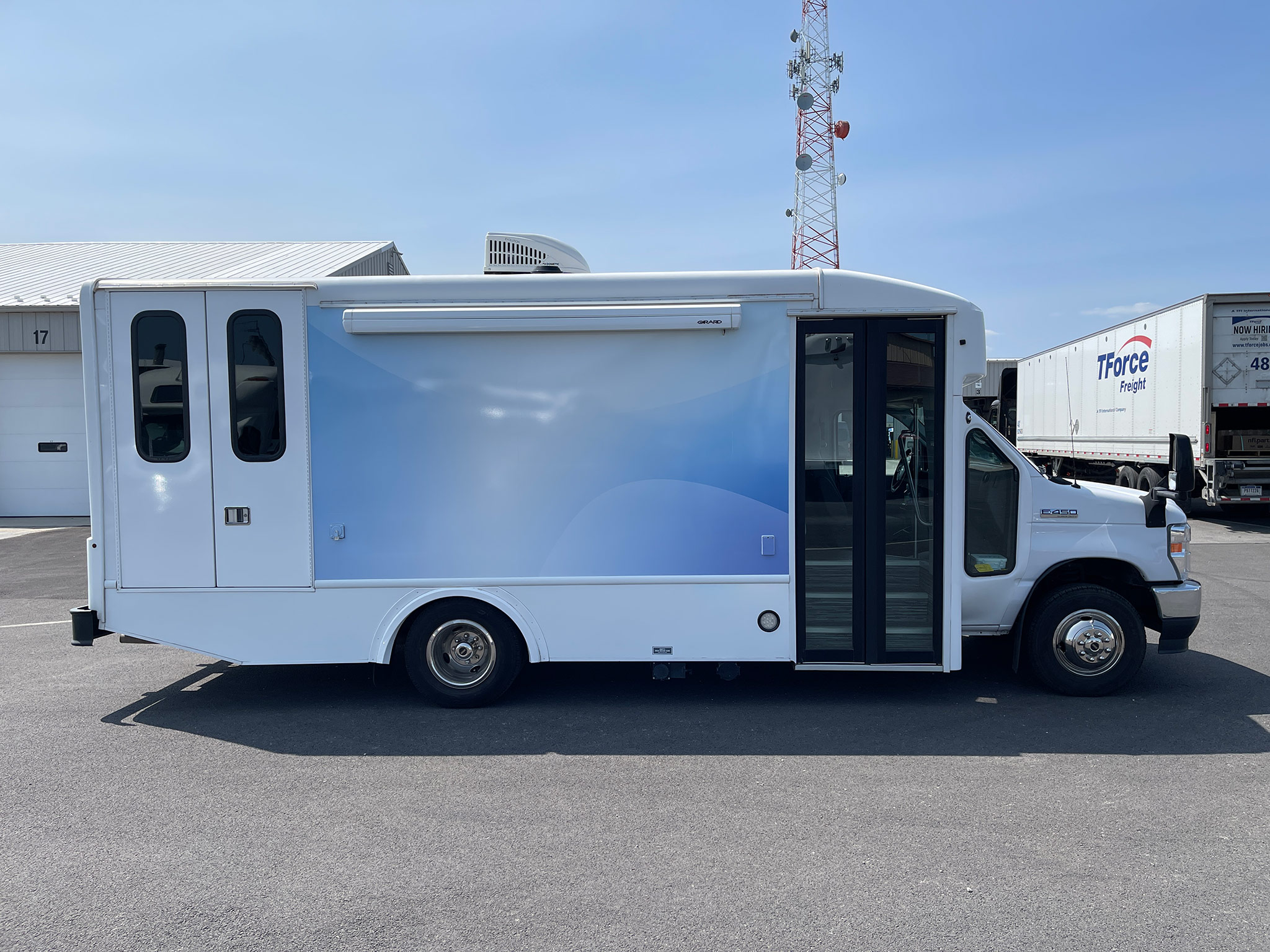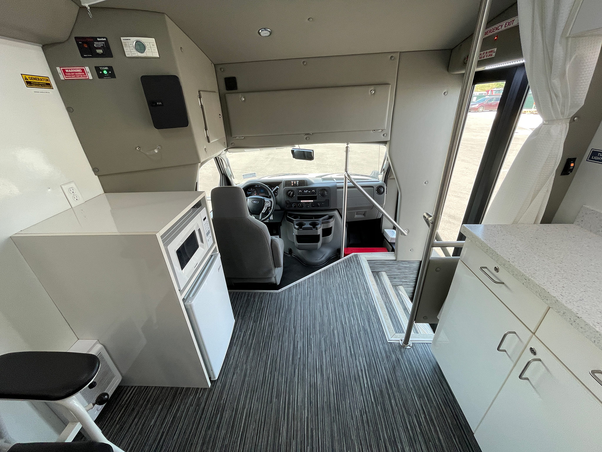 For sale is a 2021 Ford Mobile Clinic with only 10,345 miles, in great condition both inside and out. This non-CDL unit comes fully equipped for efficient field operation, including a 50 Amp Shore Power access with cord and a 7 Kw Cummins Onan generator, interMotive wheelchair interlock system. The front room has a rooftap powered vent, dometic rooftop AC unit, kidde Carbon monoxide detector, key lock box, comfee microwave, midea convenience fridge, blood draw chair, toe kick heater, upper/lower locking cabinets, Accucold medical fridge, and a bathroom with a sink. The exam room consists of a rooftop powered vent, Ritter 204 exam bed, Braun Century Platform wheelchair lift, Welch/Allyn Diagnostic equipment, upper/lower locking cabinets and a toe kick heater. The exterior of the vehicle features a combination lock box, RVS backup camera system w/ 7 in LED screen, Girard power awning, exterior GFI outlet, and a storage compartment. For more information, please call Ben at 419-708-3112.