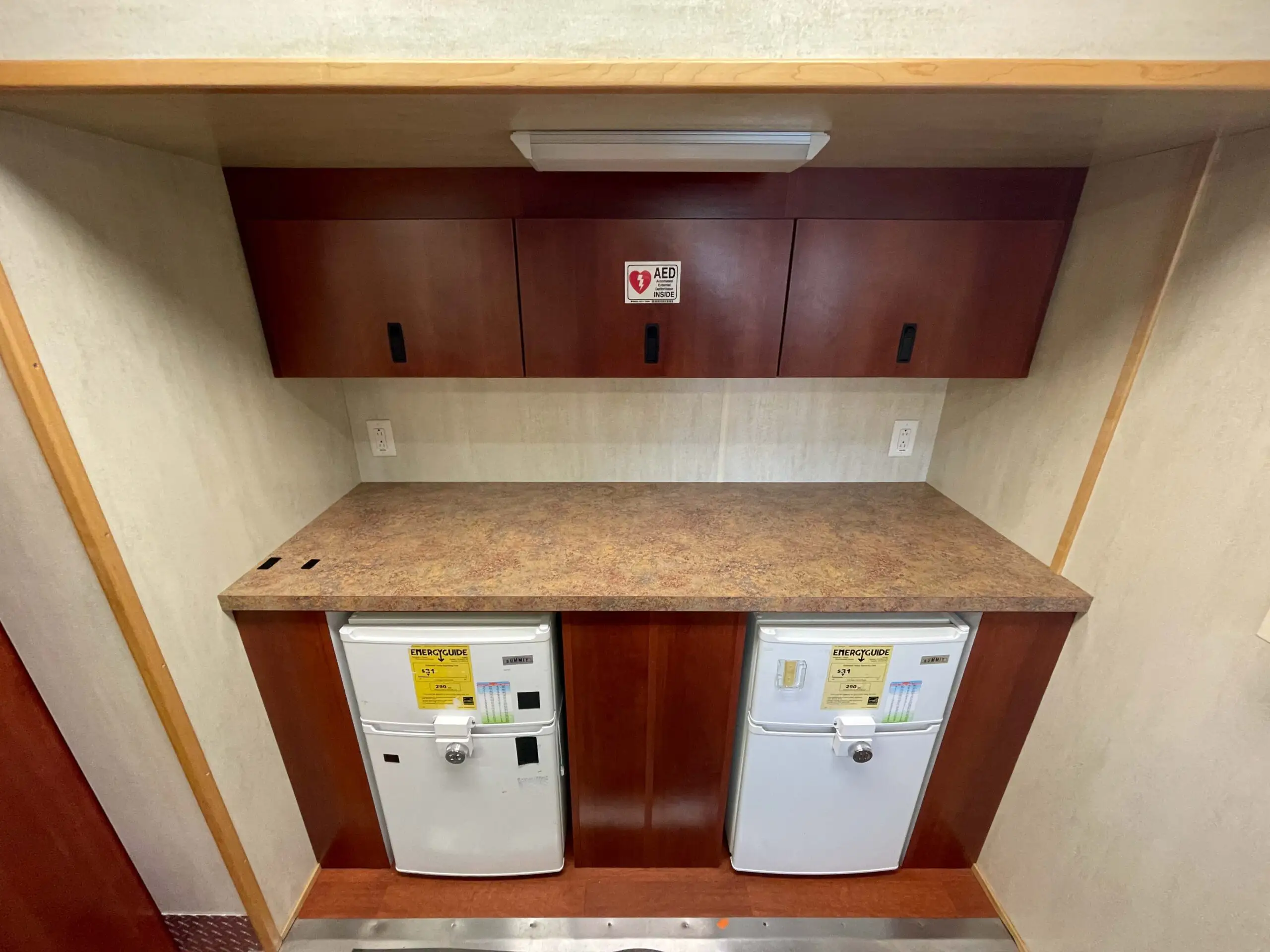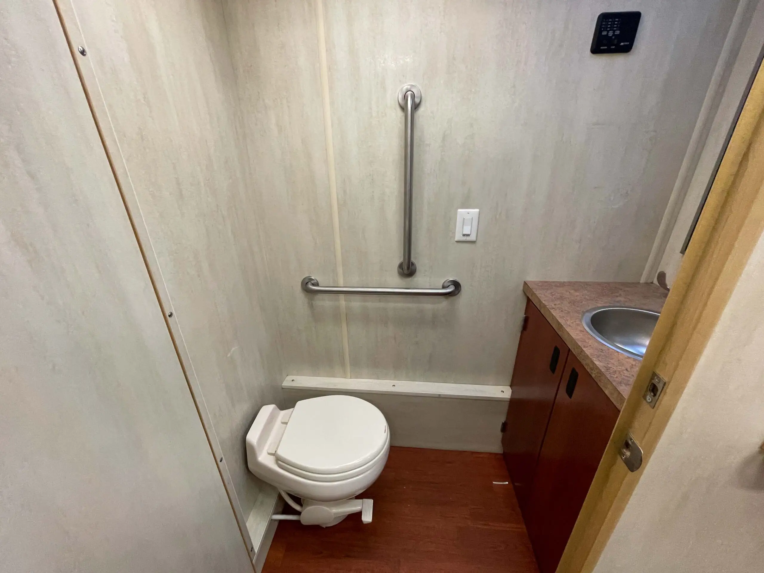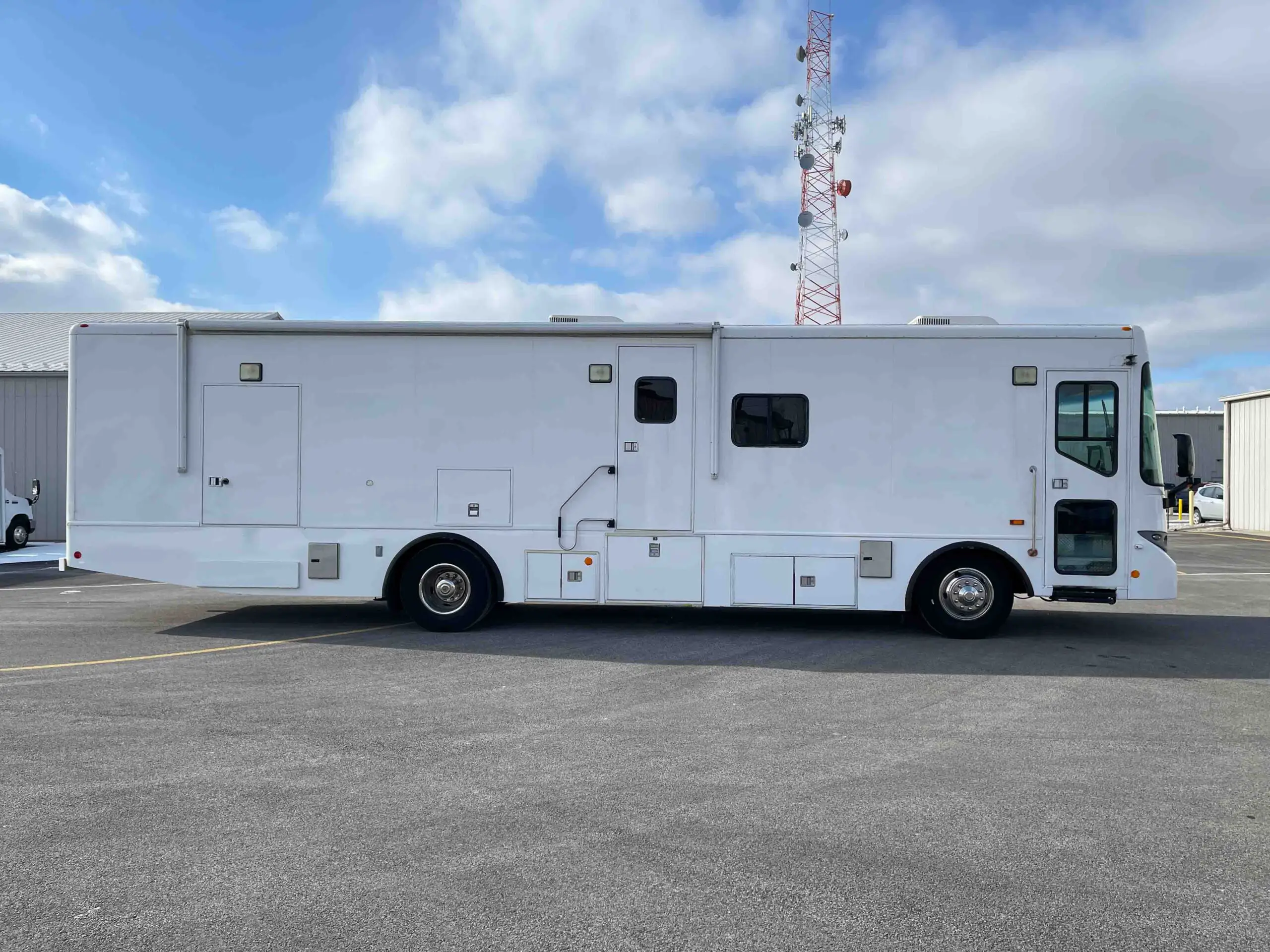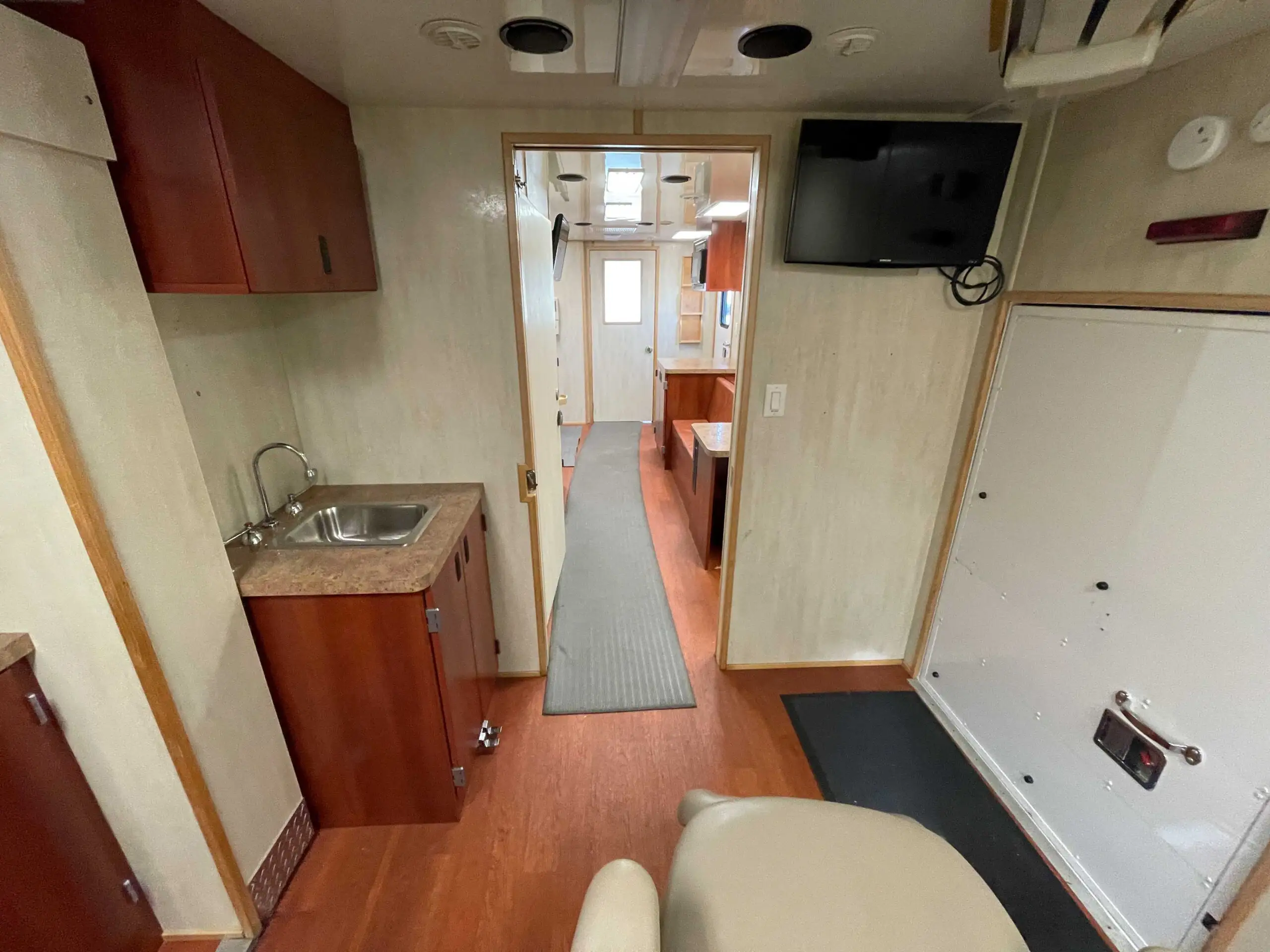 For sale is a 2015 Thomas Built mobile clinic, CDL required. This unit features two separate exam areas, each with privacy doors, as well as a waiting area. The front exam room is equipped with a Midmark 641 exam chair, a sink, rooftop air conditioning, a workstation, upper and lower locking cabinets, a trash can, a privacy curtain, and a Samsung TV monitor. The middle room offers two locking Summit medical fridge/freezers, a Franklin Chef microwave, a workstation, a waiting bench, upper and lower locking cabinets, a bathroom with a specimen pass-through and a rooftop power vent, a Prevent sharps disposable container, a networking cabinet, and a Samsung TV monitor. The rear exam room includes a Midmark 641 exam chair, a workstation, a sink, upper and lower locking cabinets, and a Samsung TV monitor. This mobile clinic is also equipped with a 20 kW Cummins generator, a Braun UVL wheelchair lift, a backup camera system, a Dometic power awning, and an outer TV monitor with an enclosure. For more information or to schedule a viewing, please contact Ben at 419-708-3112.