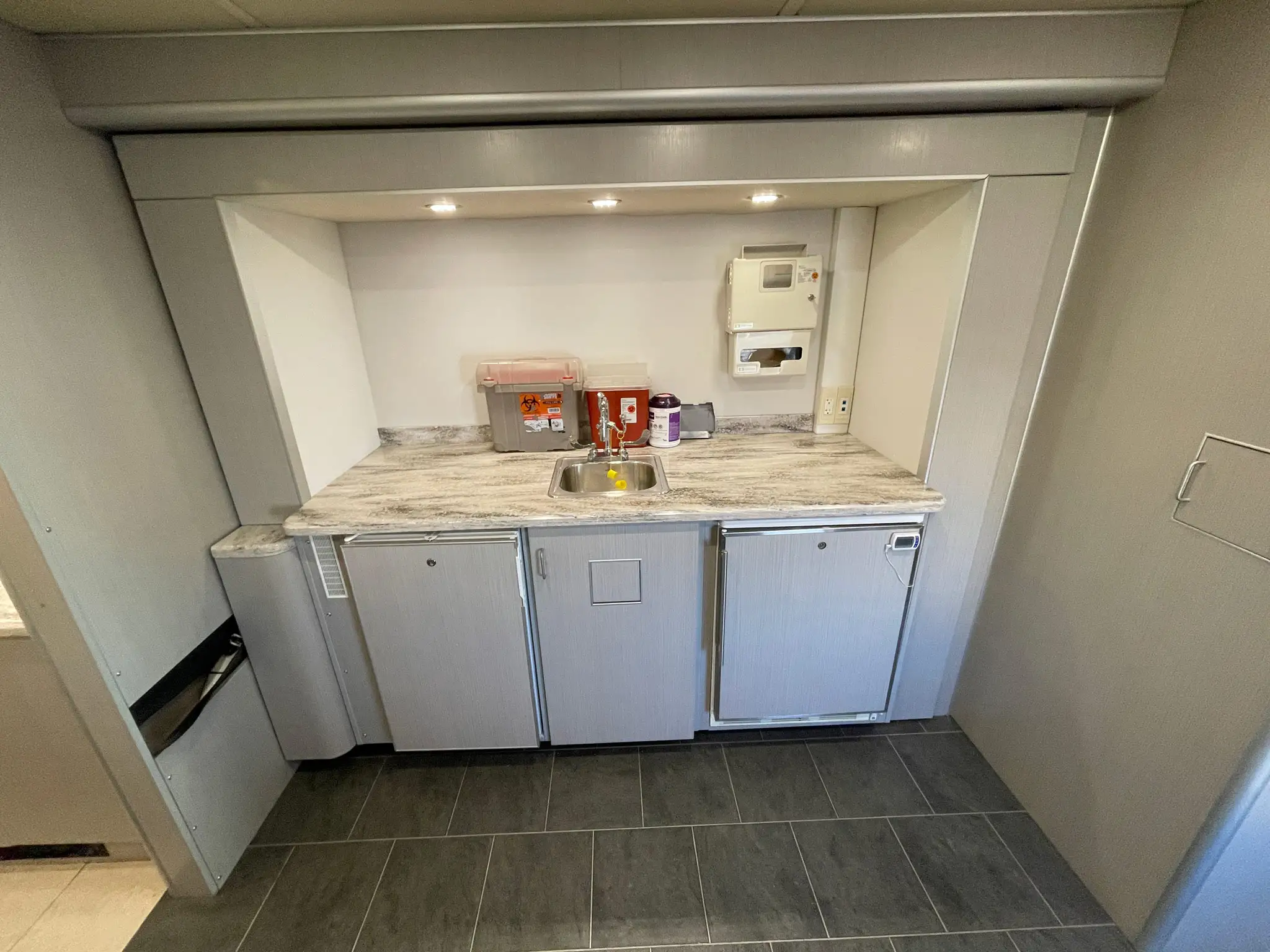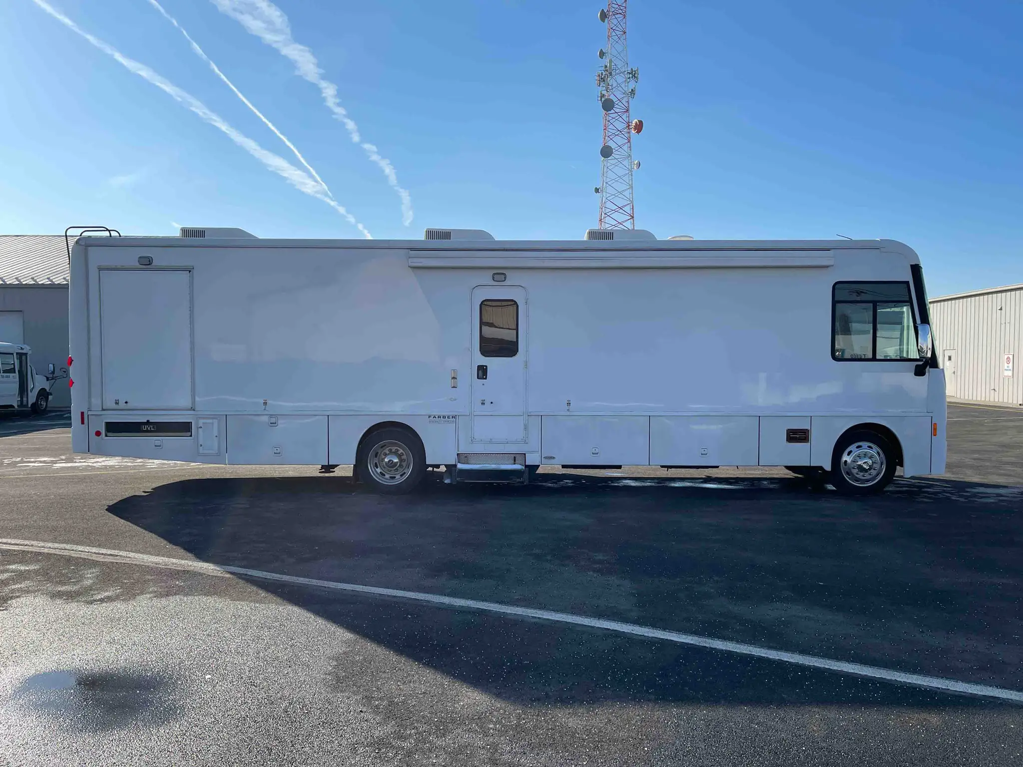 For sale is a 2014 2 Exam Room Farber Specialty Vehicles Mobile Clinic 15,085 with miles. This unit features LCI electronic leveling system, 50 amp shore power access with a cord, and 20 Kw Power Tech generator. The front exam room is equipped with a workstation, Midmark exam bed, sink, Covidien sharps container, upper and lower locking cabinets, toe kick heater, and Welch Allyn diagnostic board. The middle room features a patient waiting bench, workstation, Summit medical fridge, Accucold medical freezer, Covidien sharps container, sink, blood draw chair, upper cabinetry, and a bathroom with a sink. The rear exam rooms includes a Midmark exam bed, upper locking cabinets, Seca digital scale with height rod, O2 tanks with holders, Covidien sharps container, Welch Allyn diagnostic board, sink, and a Braun UVL. For more information, please call Ben at 419-708-3112.